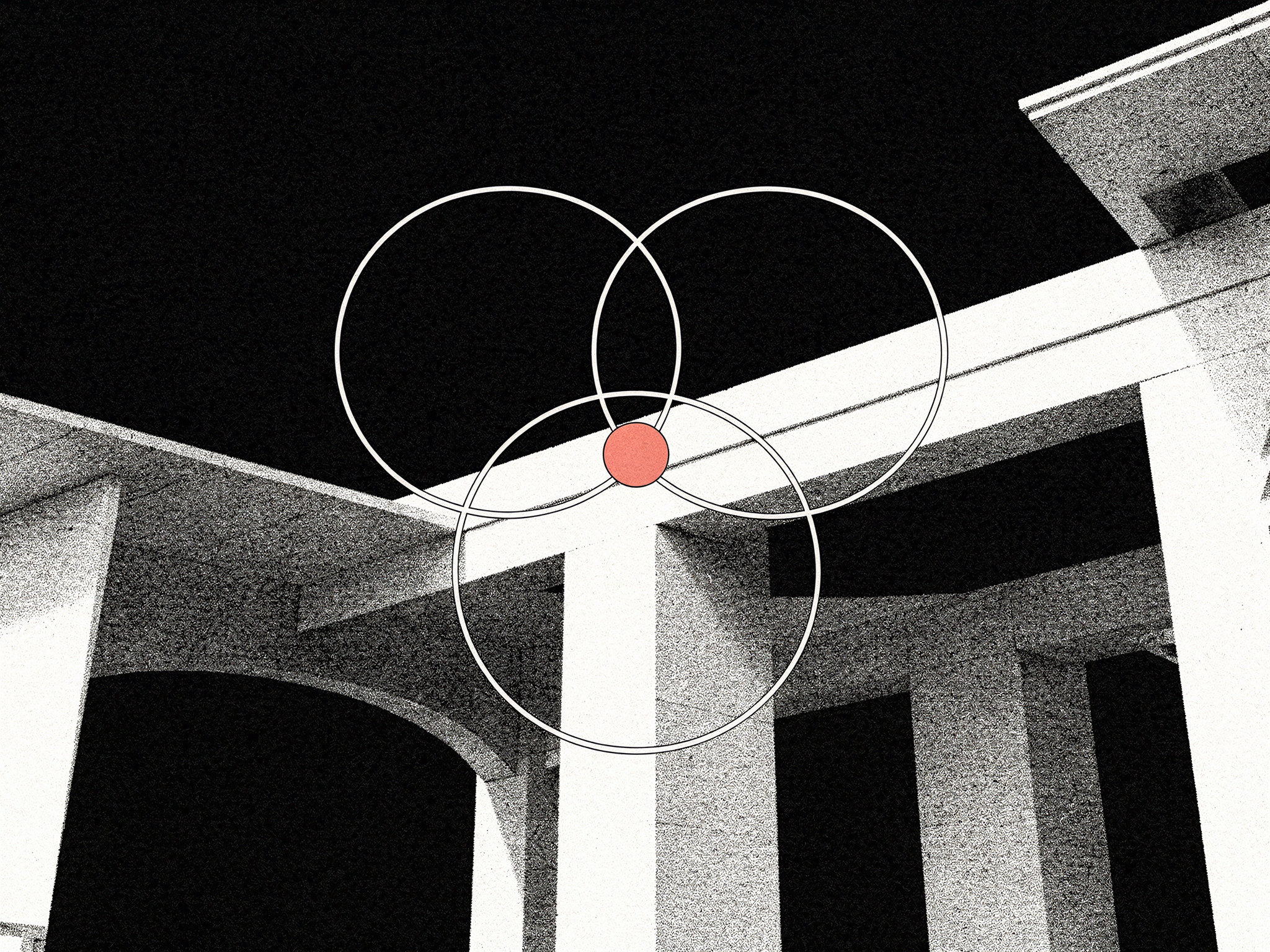 Visual complexity contrast. Busy, detailed area of the frame next to clean, minimal area. The eye is drawn to the boundary.